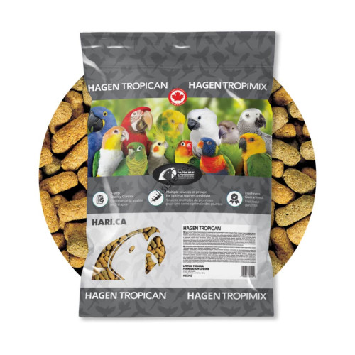 Формулата Tropican Lifetime осигурява правилно ежедневно хранене за оперени млади и възрастни папагали, за поддържане на здравословен начин на живот. Формулата Tropican Lifetime е формула с ниско съдържание на протеини и калций, която е идеална за домашни птици, които не се линеят или не са подложени на друг стрес, като например по-ниски температури. Формулирана за максимален вкус, диетата включва естествени плодови аромати като портокал и банан, както и разнообразие от 8 зърнени храни и ядки. Формулата Tropican Lifetime съдържа само естествени оцветители, като тези, които се намират в морковите и люцерната. Богат източник на омега мастни киселини от ленено семе, фъстъци и слънчогледови семки прави перата бляскави и спомага за поддържането на здравословен организъм. Тъй като Tropican съдържа витамини и минерали, не е необходима витаминна добавка.
